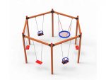 Explorer PlaygroundsOne of the all-time favourites of the playgrounds areas: Hexagon Swing.This product has a solid metal construction beam,first class wooden posts,stainlees steel connection hardware and European safety norms tested swing seats.