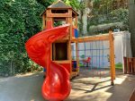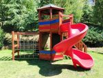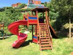 Explorer PlaygroundsWhile playing in Hexagon,kids can test their physical skills.They can climb up to the higher platform by rope connected climbing wall,they can climb the grip-stones climbing wall or they can just use the wooden steps to reach up.