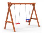 Natural Play PlaygroundsOne of the all-time favourites of the playgrounds areas: The swing.This product has a solid metal construction beam,first class wooden posts,stainlees steel connection hardware and European safety norms tested swing seats.