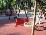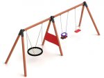 Explorer PlaygroundsOne of the all-time favourites of the playgrounds areas: The Triple swing.This product has a solid metal construction beam,first class wooden posts,stainlees steel connection hardware and European safety norms tested swing seats.