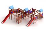 Explorer PlaygroundsThis system has seven platforms each having different activities.It has a suspension bridge,two different height slides,rope bridge and many other activites.If you ask for motor function this is the system to go for !